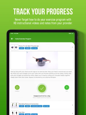 Administrer enkelt dine avtaler direkte gjennom appen; finn all relevant informasjon for timebestilling i "Appointments"-seksjonen. For å sikre at din behandler hos Aspen Rehab har et nøyaktig bilde av din utvikling og kan justere programmet etter behov, er det viktig å markere hver fullførte øvelse. Tilgang til Aspen Rehab er eksklusivt forbeholdt deg som pasient hos Aspen Rehab, og fungerer som en verdifull utvidelse av din behandlingsplan.