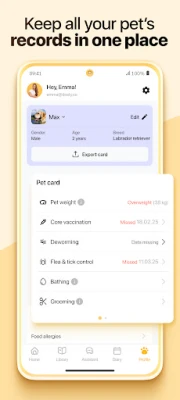 Bekymret for uvanlige symptomer? Dosty tilbyr en avansert symptomkontrollør, utviklet av et team av lisensierte veterinærer. Denne funksjonen lar deg vurdere over 60 vanlige symptomer hos hunder og katter, og gir deg øyeblikkelige, pålitelige rapporter som enkelt kan deles med din egen veterinær ved behov. I tillegg sørger Dosty for at du er proaktiv med daglige tips og utviklingsplaner som er nøyaktig tilpasset kjæledyrets alder, rase og spesifikke behov. Enten du oppdrar en valp eller en kattunge, veileder Dosty deg steg for steg gjennom hver viktig milepæl, noe som sikrer en sunn og lykkelig utvikling.