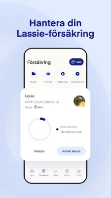 Alle brukere kan benytte Lassie til å utvide sin forståelse for dyrehold. Få umiddelbar tilgang til et omfattende bibliotek av informative videoer og artikler som veileder deg i den beste omsorgen for din hund eller katt. Samtidig som du lærer, samler du poeng som belønner din innsats for dyrets velvære. For Lassies forsikringskunder utvides appens muligheter betydelig: Konverter enkelt dine oppsamlede poeng til rabatter på forsikringen, håndter alle dine forsikringsdetaljer, meld skader, og få rask kontakt med digital veterinær – alt sømløst integrert. Du har også døgnåpen tilgang til assistanse og full oversikt over dine forsikringsdokumenter og vilkår.